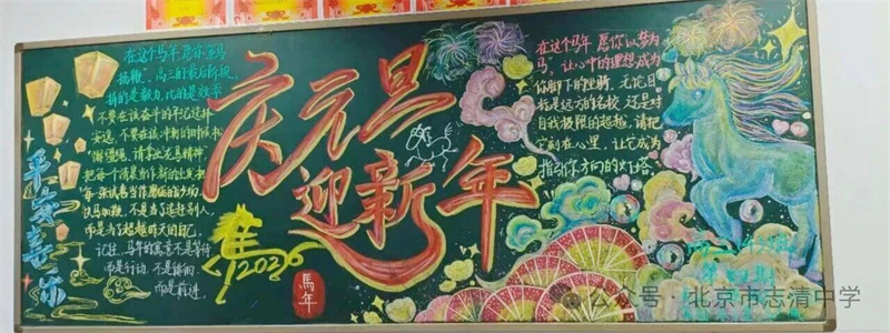 各班同學(xué)精心制作的新年板報(bào),每一幅都是學(xué)子們對(duì)新年的深情告白。