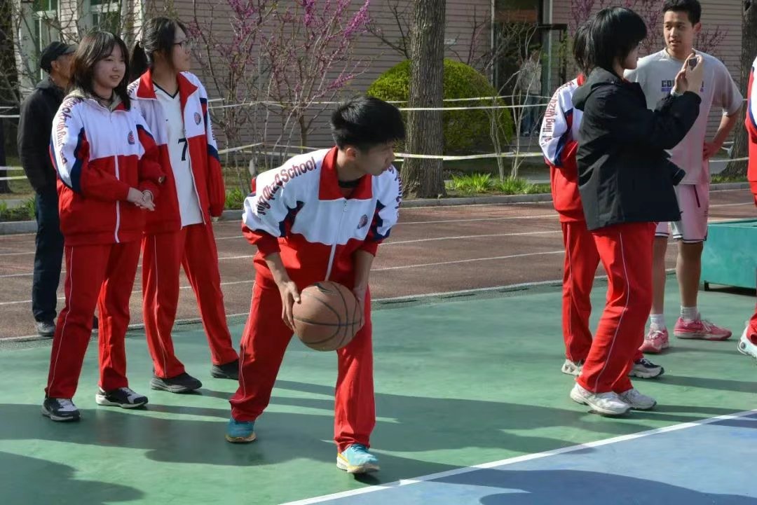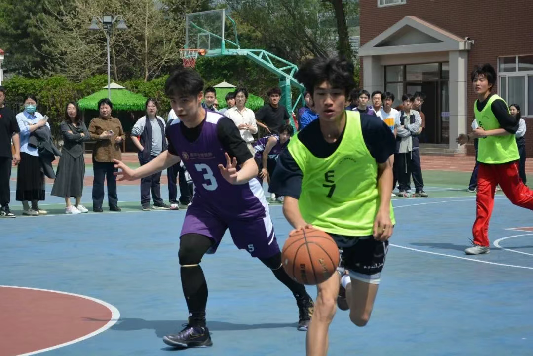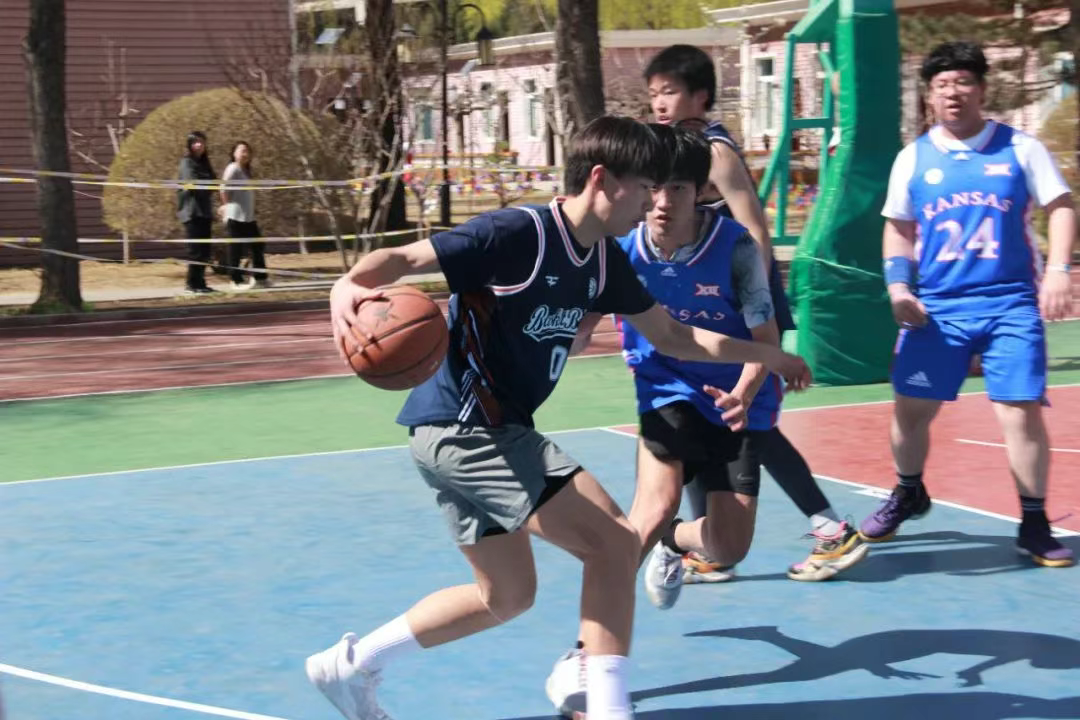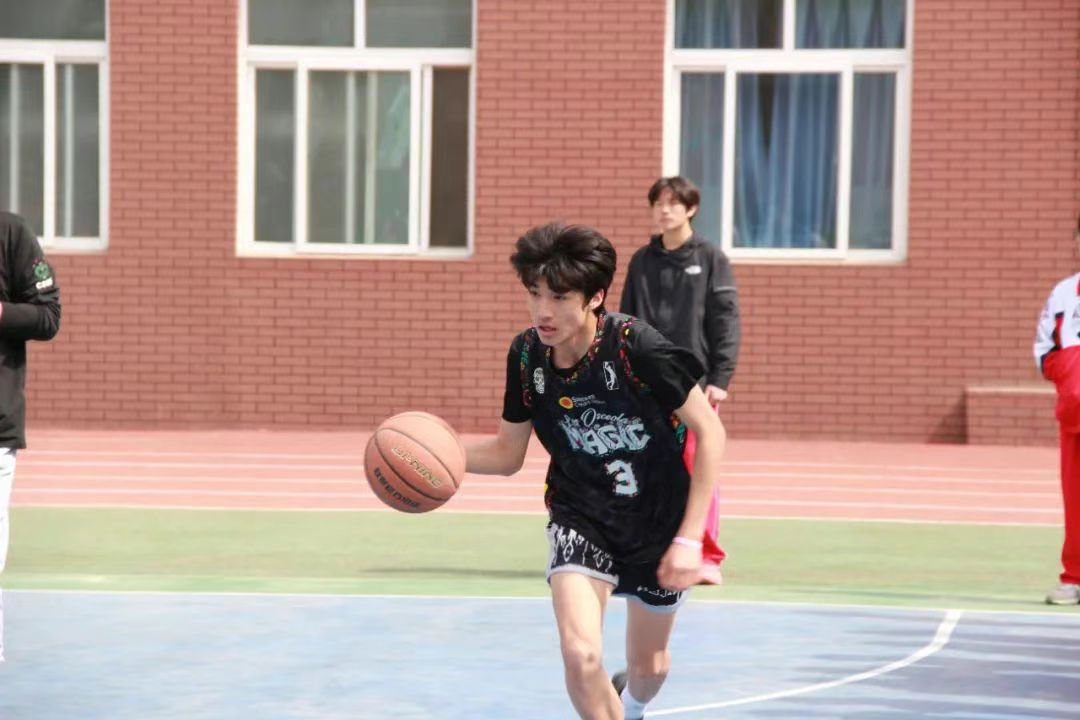 由普高班和雙語(yǔ)班各自選出的明星球員進(jìn)行了一場(chǎng)友誼賽,雙方帶著對(duì)勝利的渴望全力奮戰(zhàn)。突破時(shí)風(fēng)馳電掣,如離弦之箭直插籃下;防守時(shí)寸步不讓;進(jìn)攻時(shí)默契配合,擋拆、傳球、投籃一氣呵成。