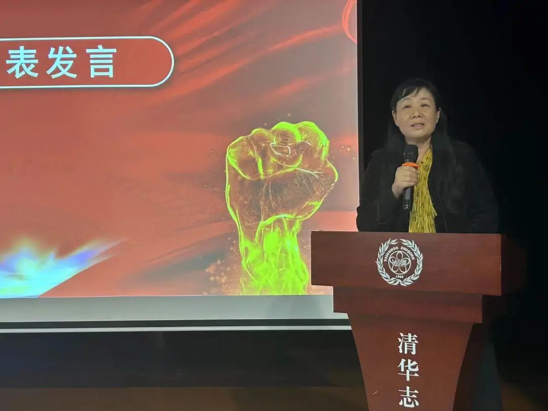萬奕沁媽媽作為家長代表,首先向?qū)W校的領(lǐng)導(dǎo)和老師們表示深深的感謝。感謝在過去的時間里,學(xué)校和老師傾注了無盡的辛勞和關(guān)懷,為孩子們提供了豐富的知識和教育資源。孩子們能夠在這樣一個優(yōu)質(zhì)的環(huán)境中學(xué)習(xí)、成長、進(jìn)步、提升,家長深感幸運(yùn)與欣慰。其次為高三學(xué)子送去了祝福,最后代表全體高三家長做出承諾,請將多花時間與孩子交流,了解孩子的需求和壓力,給予支持,做孩子堅強(qiáng)的后盾,同孩子一起成長,鼓勵他們自信、堅毅地前行。